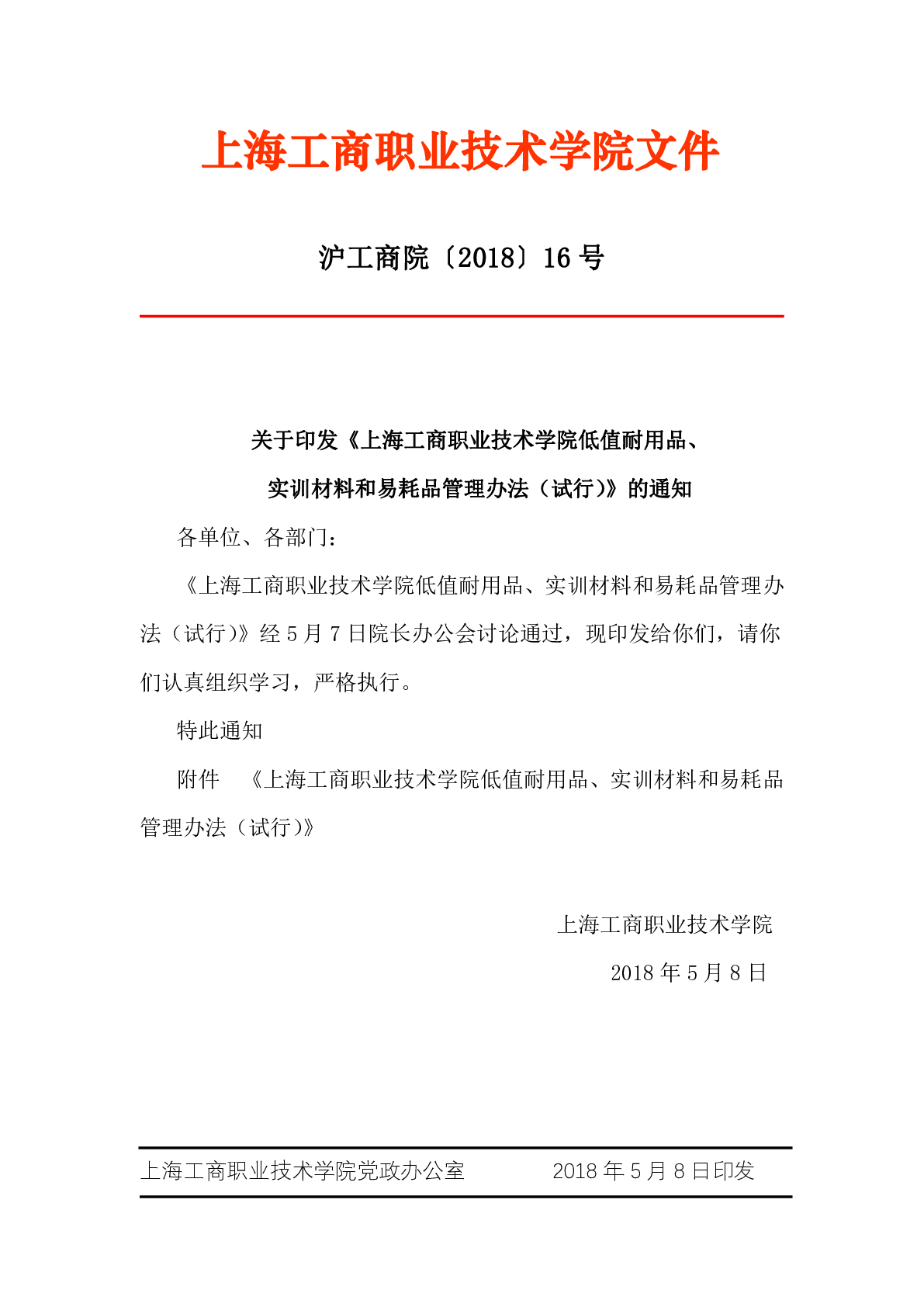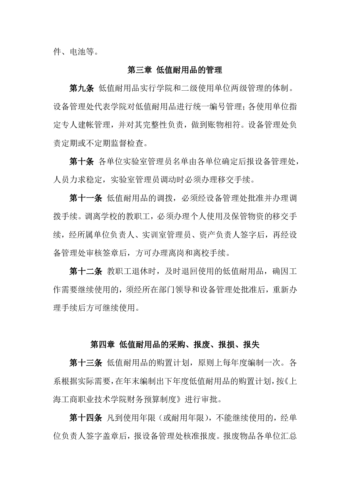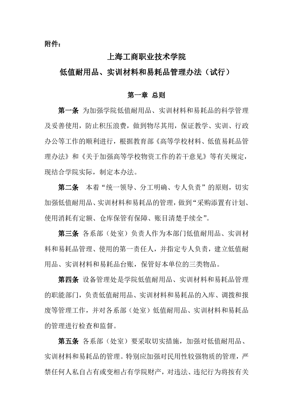 上海工商职业技术学院 低值耐用品、实训材料和易耗品管理办法(试行)